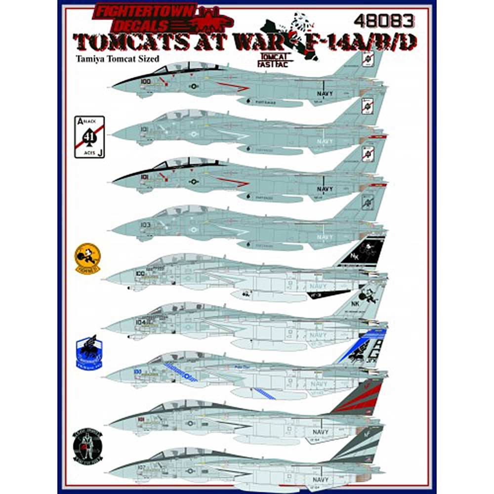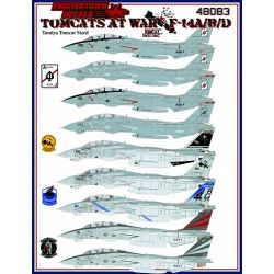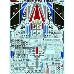 このセットではF-14A/B/D各トムキャットのマーキングを収録しています。人気のVF-31トムキャッターズの機体のほか、スペードのエースのマーキングで知られるVF-41ブラックエイセスの機体、さらに、尾翼のグリフィンマークが魅力のVF-143の機体や、日本に展開しお馴染みのVF-154ブラックナイツの機体のマーキングを集めたセットです。