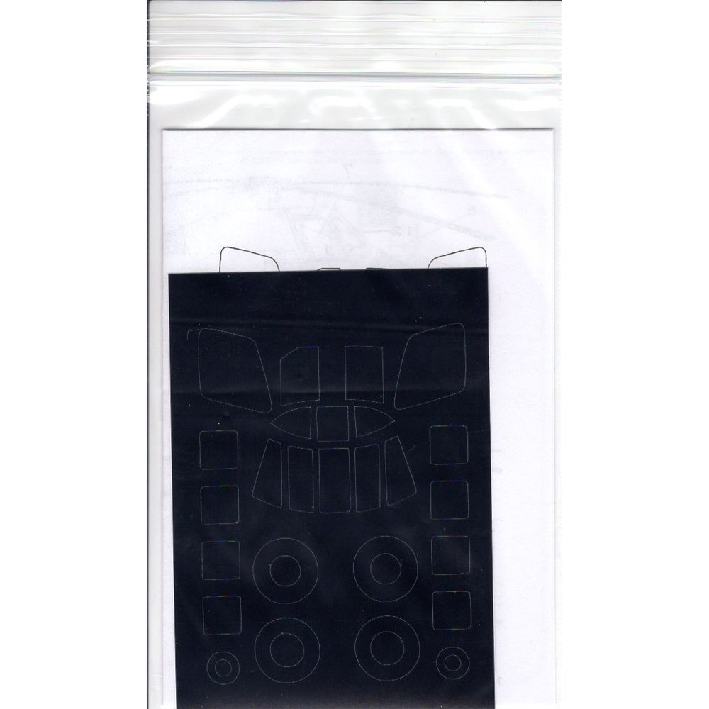 このセットでは1/48スケールのヘリコプターモデル、シコルスキーH-34G.III/UH-34Jの窓枠を塗装するためのマスキングシールとホイールのマスキングシールを収録しています。フロントのキャノピー、ウインドウエリア、キャビン部分のウインドウ、さらに、ホイール用が入っています。ブラックカラーのシールに窓枠やウインドウなどの形状を考慮したカッティングが施され、キットの指定部分に台紙から剥がして貼るだけ。面倒なマスキング作業が手軽にできます。シールがブラックですから透明パーツなどに貼った時にも位置が分かりやすいのも魅力です。詳しいフルカラーの説明書もついています。