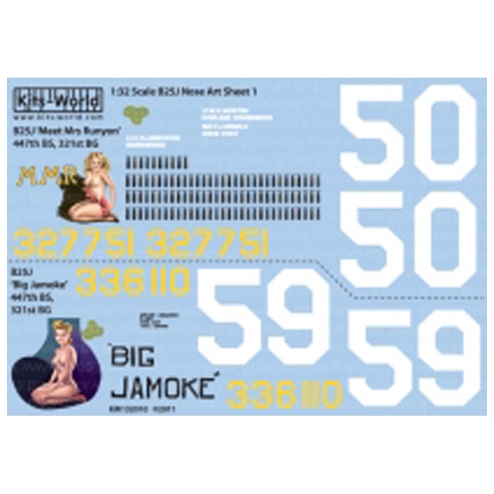 1/32スケールのノースアメリカンB-25Jミッチェルのキットに対応したデカールのセットです。