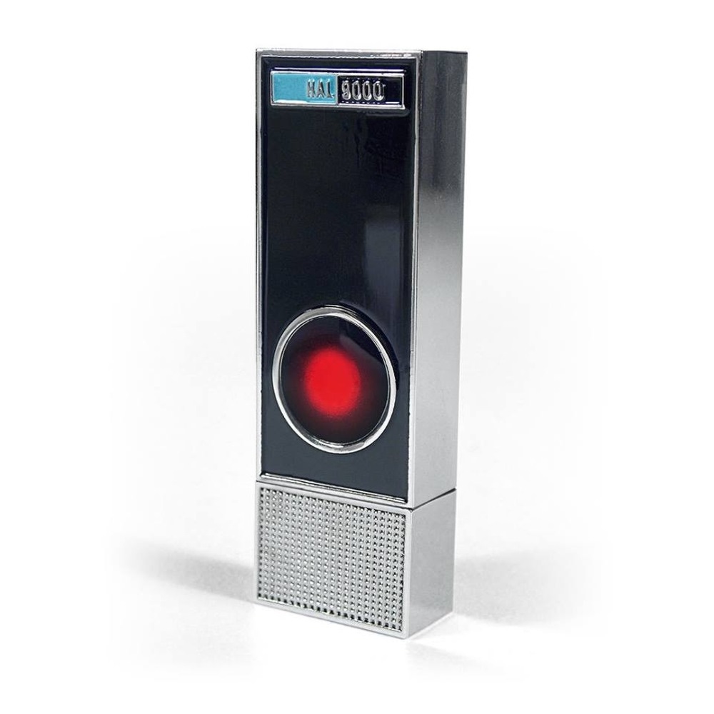 映画の公開50周年を記念して製作されたアイテムです。容量32GBのUSBメモリは金属製で高さは約5cm。HAL9000のカメラアイをエナメルのブラックとカメラアイの部分は光沢のあるエポキシで表現しています。