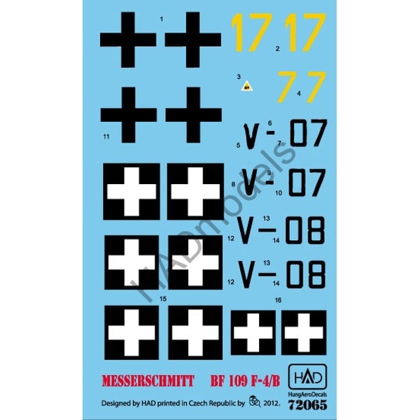 1/72スケールの第二次大戦でハンガリー空軍が使用したメッサーシュミットBf-109のモデルに対応したデカールのセットです。