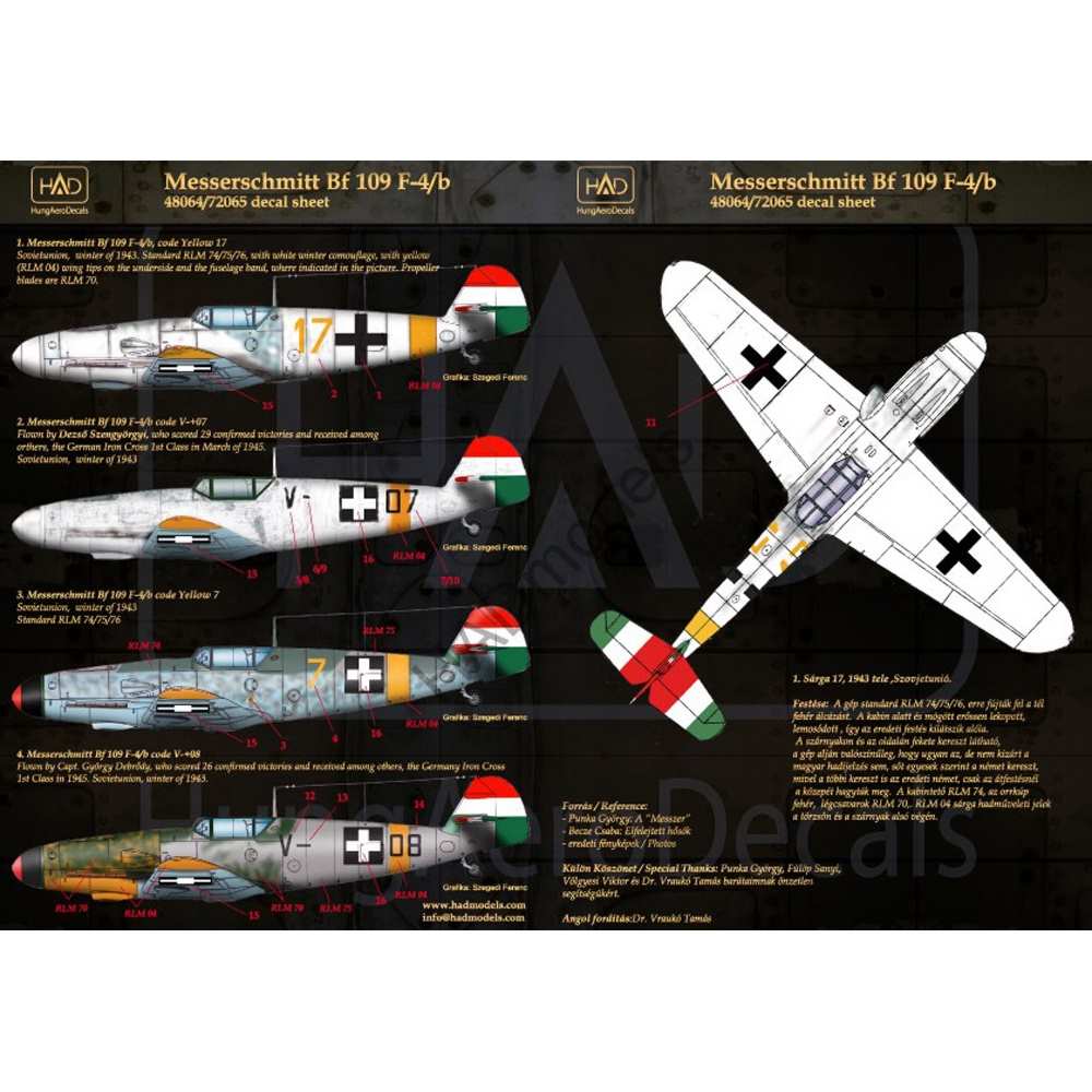ハンガリー空軍が使用したメッサーシュミットBf109F-4/bの4種類のマーキングの中から選択して製作可能。