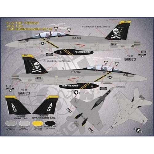 ■F/A-18F 166620, "AG 200", VFA-103, USS Eisenhower, 2012-The Jolly Rogers' CAG jet from their 2012 cruise that features the large skull presentation on the tail.