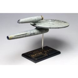モデルは2009年に公開された映画、劇場版スタートレックの第11作となるスタートレックに登場したNCC-0514 U.S.S.ケルヴィンを1/1000スケールで再現したプラスチックモデル組み立てキットです。円盤の上下に第二船体とワープナセルを配置したレイアウトの特徴あるスタイルの船体をリアリティ十分にモデル化しています。パーツ点数は58点、仕上がり全長は約28cm、幅約17cm。映画のデジタル・ヴィジュアル・エフェクトのデータをベースにその形はもちろん、船体表面のパネルラインをはじめとするディテールも詳細に再現しています。塗装仕上げに腕を振るってみるのも楽しみです。また、スターフリート・レジストリプラークをデザインしたディスプレイベース付き。さらに、ボックスアートはスタートレックファンにはおなじみのアーティスト、ジョン・イーブスのイラストを採用。宇宙空間を航行するケルヴィンの姿を魅力たっぷりに描き出しています。