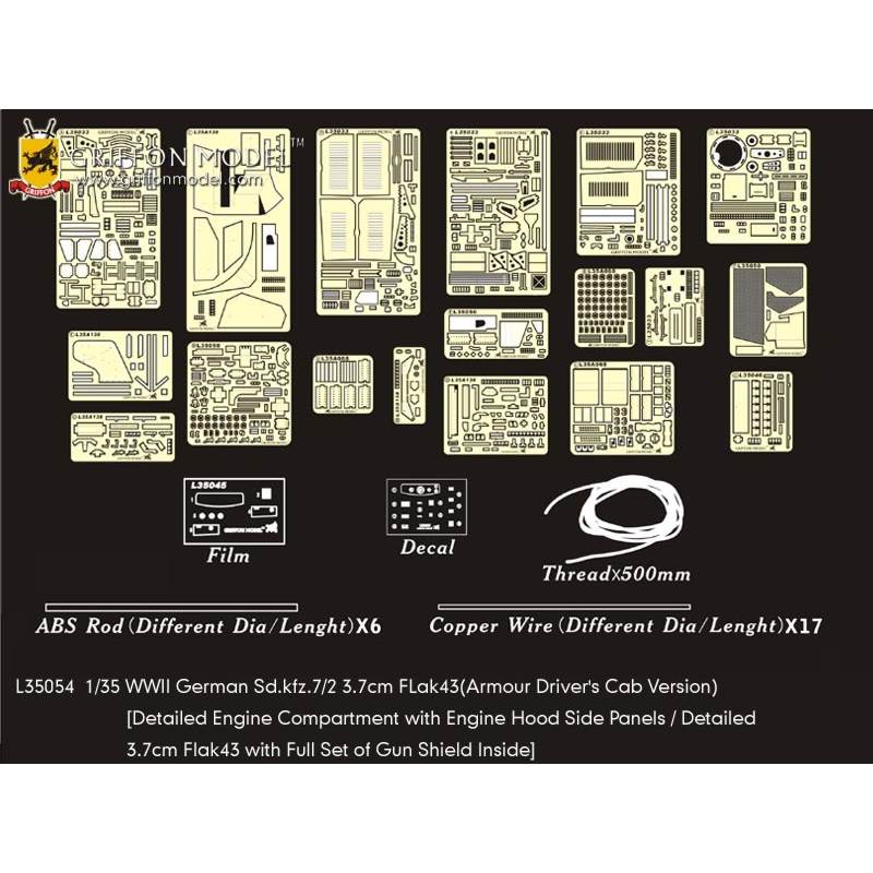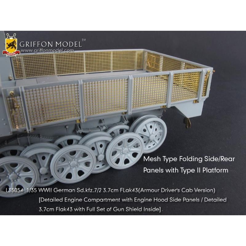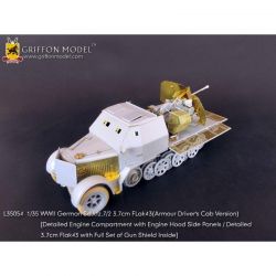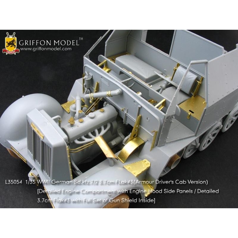 サイバーホビーの1/35ドイツSd.Kfz.7/2装甲8トンハーフトラック3.7cm対空機関砲Flak43搭載型(キット№6553)のキットに対応したディテールアップパーツセットです。