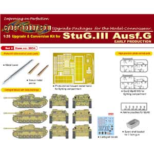 サイバーホビーの1/35ドイツIII号突撃砲G型初期生産型のキットに対応したディテールアップパーツセットです。