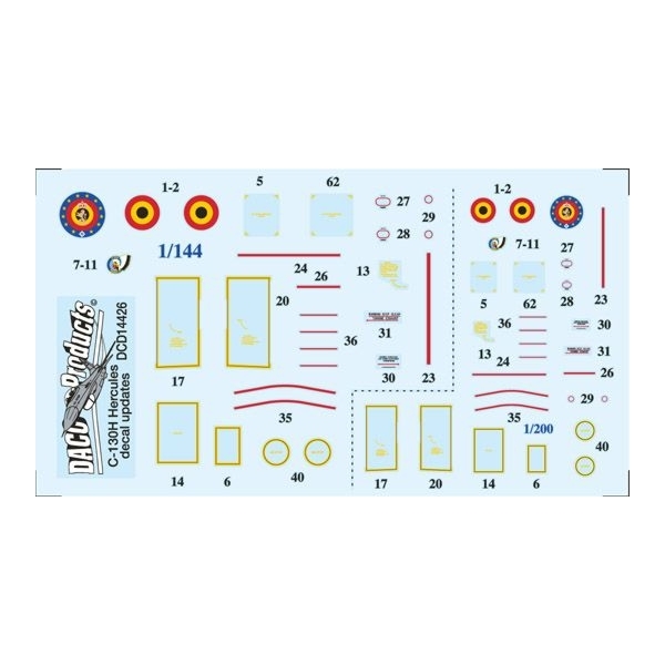 1/144スケールと1/200スケールのC-130Hハーキュリーズのモデルに対応したデカールのセットです。