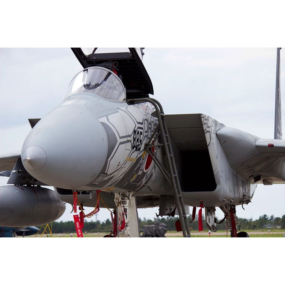 主力機F-15Jイーグルは1974年に実戦配備が始まったアメリカ空軍のF-15Cをベースに航空自衛隊の独自装備を施した機体で、独自の戦術電子戦システム、J/TEWSや同じく独自のデータリンクシステムなどを搭載しています。