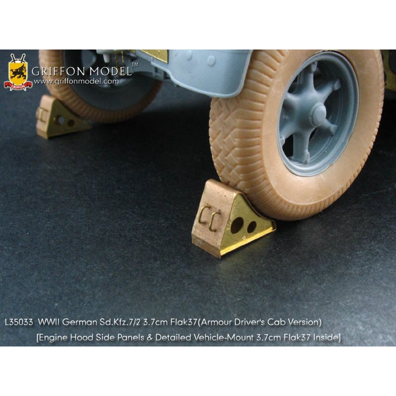 サイバーホビーの1/35ドイツSd.Kfz.7/2装甲8トンハーフトラック3.7cm対空機関砲搭載型(キットNo.6542)のキットに対応したディテールアップパーツセットです。