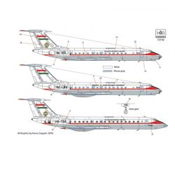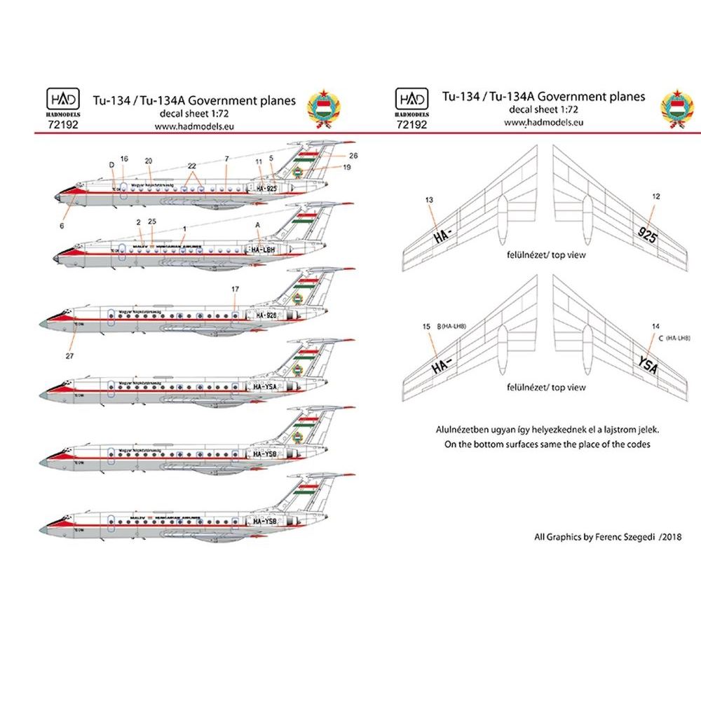 このセットはHADモデルが地元、ハンガリー政府が運用するツポレフの旅客機、Tu-134の政府専用機のマーキングを収録したデカールセットです。Tu-134は1967年から運用が開始された双発のジェット旅客機で民間航空機のみならず、政府専用機として採用している国もあります。ハンガリーも空軍が政府専用機として運用。白い機体に赤いライン、尾翼には国旗が描かれています。軍用機や民間エアラインとは一味違った仕上がりが見逃せません。