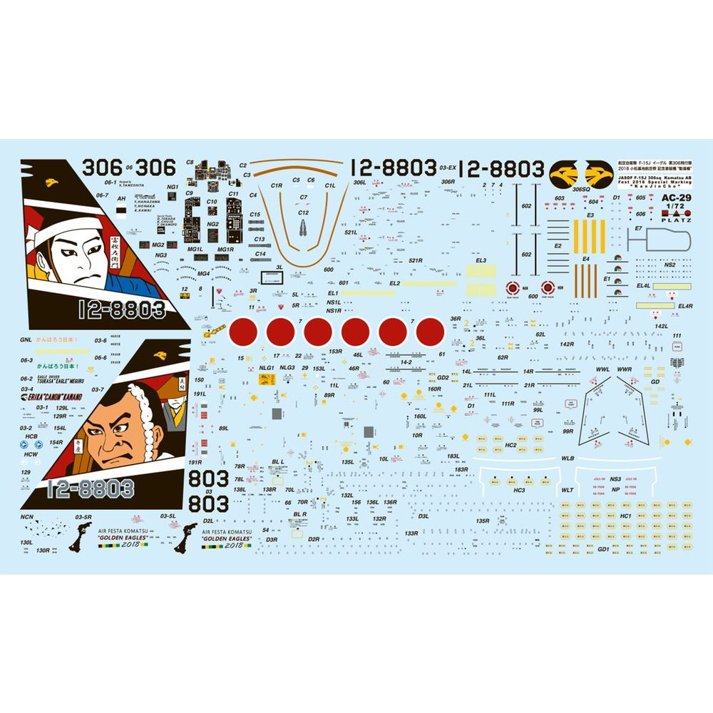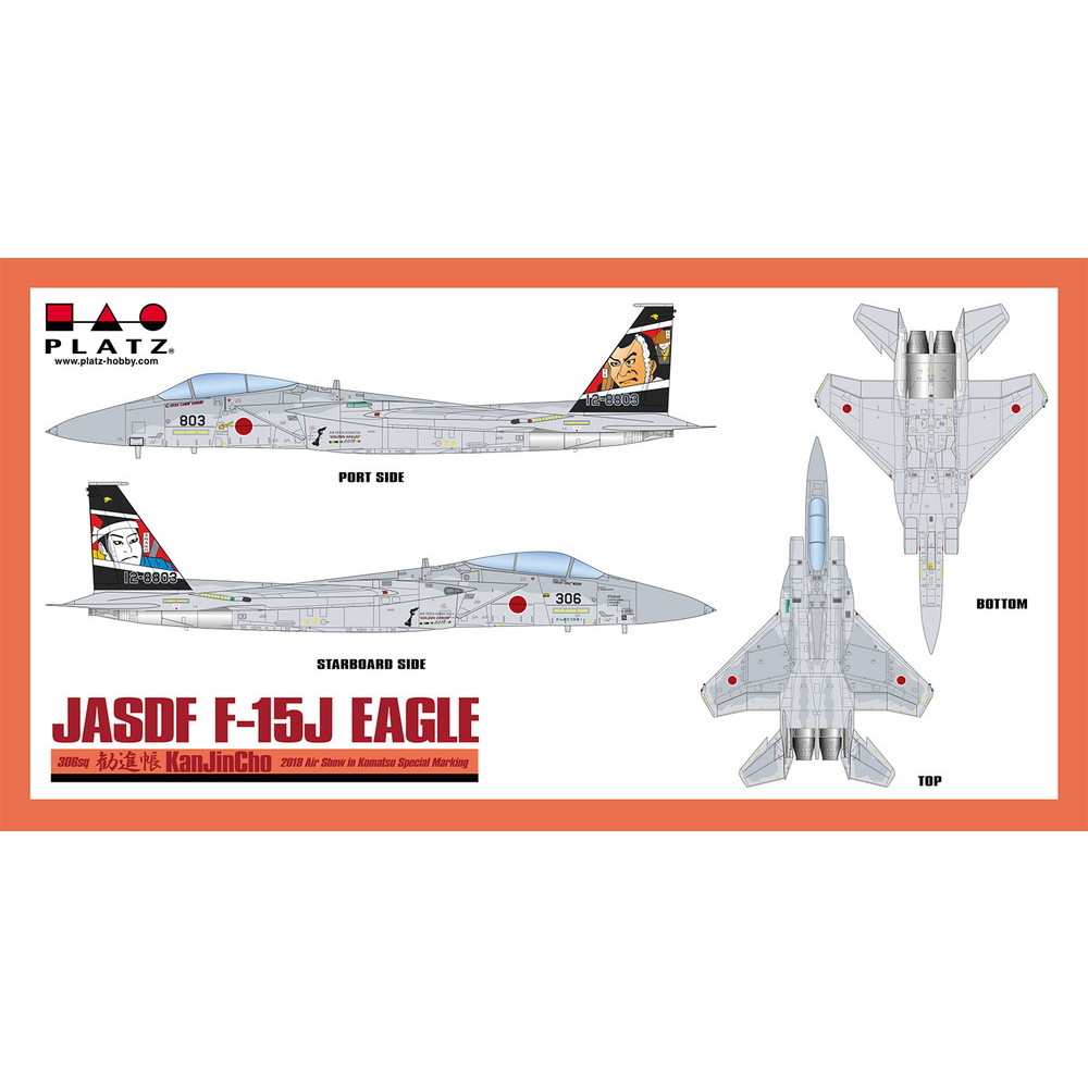2018年の航空自衛隊小松基地航空祭に展示飛行を実施した航空自衛隊第306飛行隊所属のF-15Jイーグルの航空祭記念マーキングを施した機体を1/72スケールで再現したプラスチックモデル組み立てキットです。