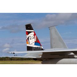 垂直尾翼の左右で異なるイラストが施されているのが特徴で、カラフルな色使いのマーキングを正確に再現。この記念塗装機のデザインは部隊内公募で選ばれたデザインをベースに作成されていました。