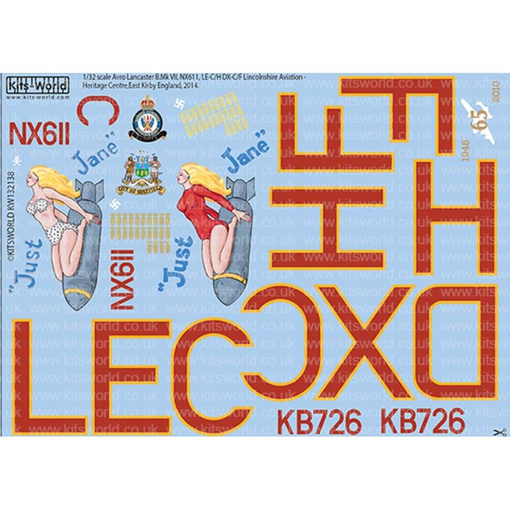第二次大戦でイギリス空軍が配備運用した大型爆撃機、アブロ・ランカスターの1/32スケールモデルに対応したデカールのセットです。
