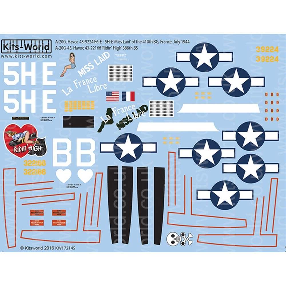 第二次大戦でダグラスによって開発された双発の攻撃機、A-20ハヴォックの1/72スケールモデルに対応したデカールのセットです。