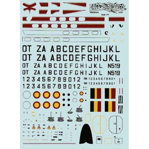 このセットではベルギー空軍が1954年から76年まで配備していた双発の小型輸送機、パーシヴァルP.66ペングロークC51の機体に描かれた各種ステンシルを再現するデカールです。ベルギー空軍の国籍マークをはじめ、細かなマークをしっかりと再現して収録しています。