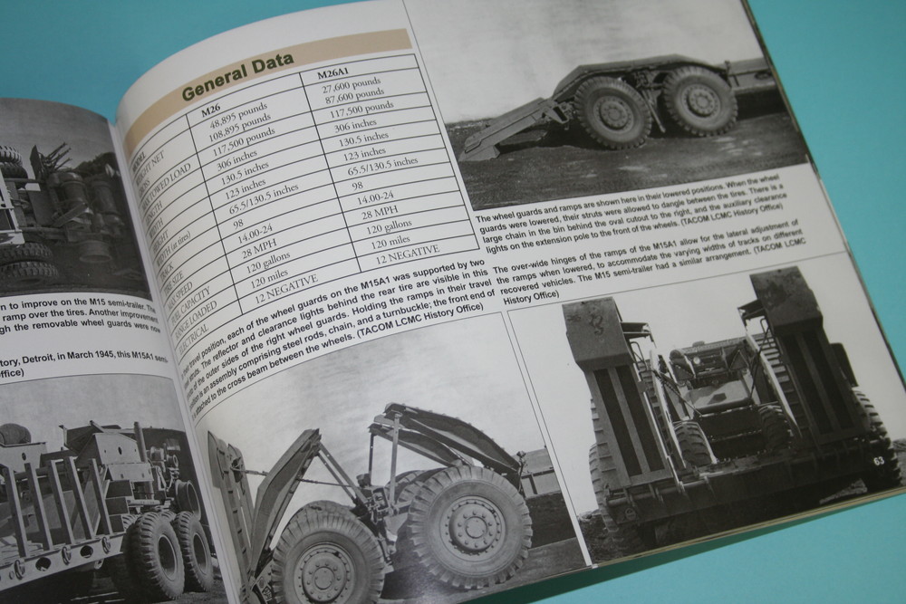 本書ではトラクターとトレーラーに分けてページを構成。トラクターは装甲キャビンを持ったM26とその後登場した非装甲キャビンタイプのM26A1をそれぞれ取り上げて紹介するほか、トレーラーもM15、M15A1、M15A2を収録。細部のディテール写真は現存する車両を取材して細部写真を豊富に掲載するだけでなく、可動車両については迫力ある走行写真も撮影しています。
