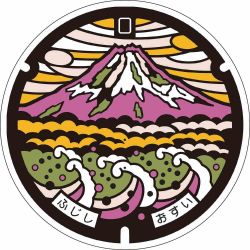 絵柄は4種類。富士山をあしらった静岡県の富士市、フクイラプトルの恐竜のイラストを入れた福井県の勝山市、ソメイヨシノとイチョウ、ゆりかもめをデザインした東京都23区、そして、高校ラガー憧れの的である花園ラグビー場が有名な大阪府の東大阪市。全国各地にある人気のマンホールの絵柄をセレクトしています。