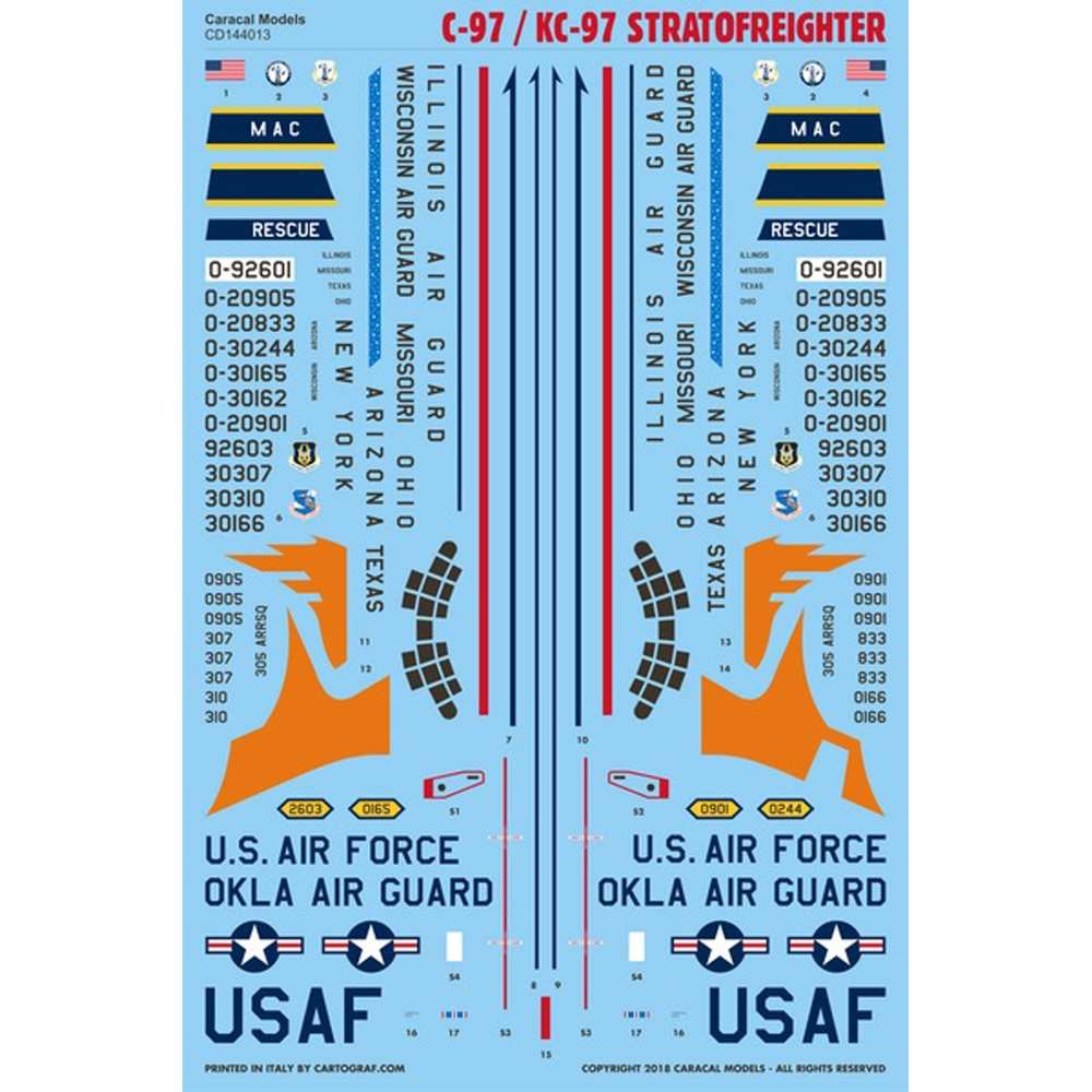 1/144スケールのアメリカ空軍C-97/KC-97のモデルに対応したデカールのセットです。