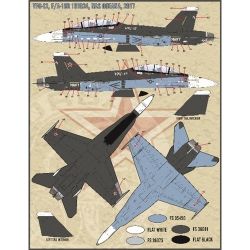 このセットではアメリカ海軍が運用するアグレッサー部隊のF/A18の機体からマーキングをセレクトしています。2002年から2017年までの機体から6機のマーキングを収録。アグレッサー部隊の機体ならではのカラーリングに合わせたマーキングは飛行機ファンには見逃せません。また、ステンシル類は2機分をセット。2キットを製作することが可能です。