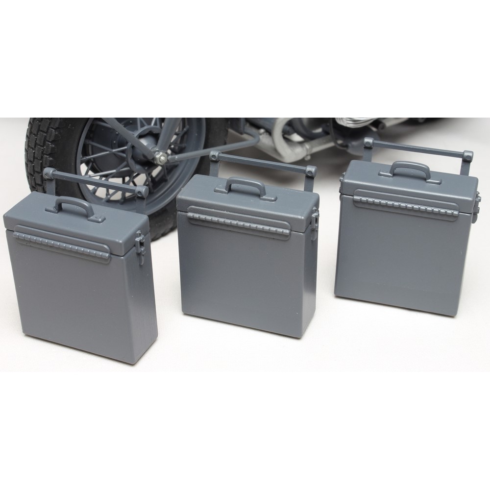モデルは第二次世界大戦でドイツ軍が多数配備、運用した代表的軍用サイドカーを1/9スケールで再現したプラスチックモデル組み立てキットです。