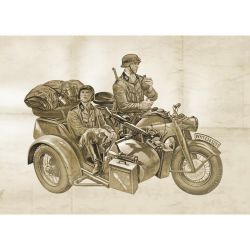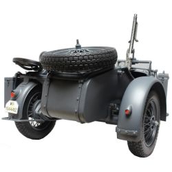 第二次大戦でドイツ軍は各部隊の連絡などを中心に数多くのバイクやサイドカーを配備、運用しました。主にドイツのモーターサイクルメーカーであるBMWとツェダップがそれらの製造を担当。