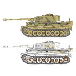 1/35スケールのドイツ軍重戦車、ティーガーI型中期生産型のオットー・カリウス仕様を1/35スケールで再現したプラスチックモデル組み立てキットです。