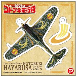 一辺6cmのアクリルプレートに、それぞれのキャラクターが乗る隼一型と、各パーソナルマークをデザイン。集めてそのまま飾ってもかっこいいデザインとなっております。 また、取り外して付属のボールチェーンに通せばキーホルダーとしても使用可能。いつでも身近に『コトブキ飛行隊』を感じられます!
