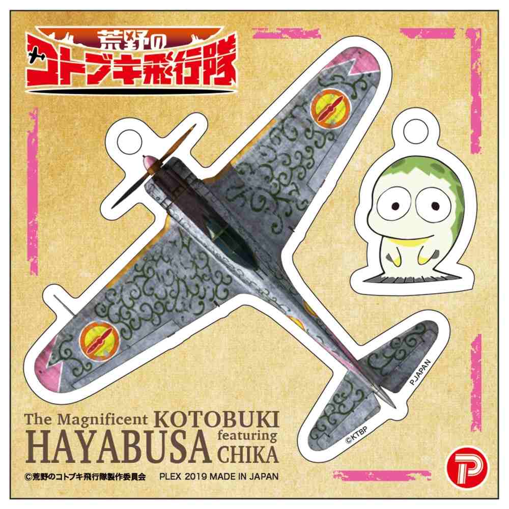 一辺6cmのアクリルプレートに、それぞれのキャラクターが乗る隼一型と、各パーソナルマークをデザイン。集めてそのまま飾ってもかっこいいデザインとなっております。 また、取り外して付属のボールチェーンに通せばキーホルダーとしても使用可能。いつでも身近に『コトブキ飛行隊』を感じられます!