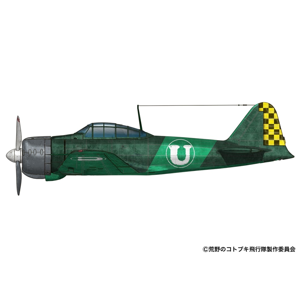 劇中に登場した「零戦二一型」をUのマークと尾翼のチェッカー柄が特徴的なウガデン所属機と、スペードマークが映えるサクラガオカ騎士団所属機の、どちらかを選択して仕上げられる2in1キットでモデル化。主翼や胴体の帯状のラインなども、デカールでしっかりと再現。