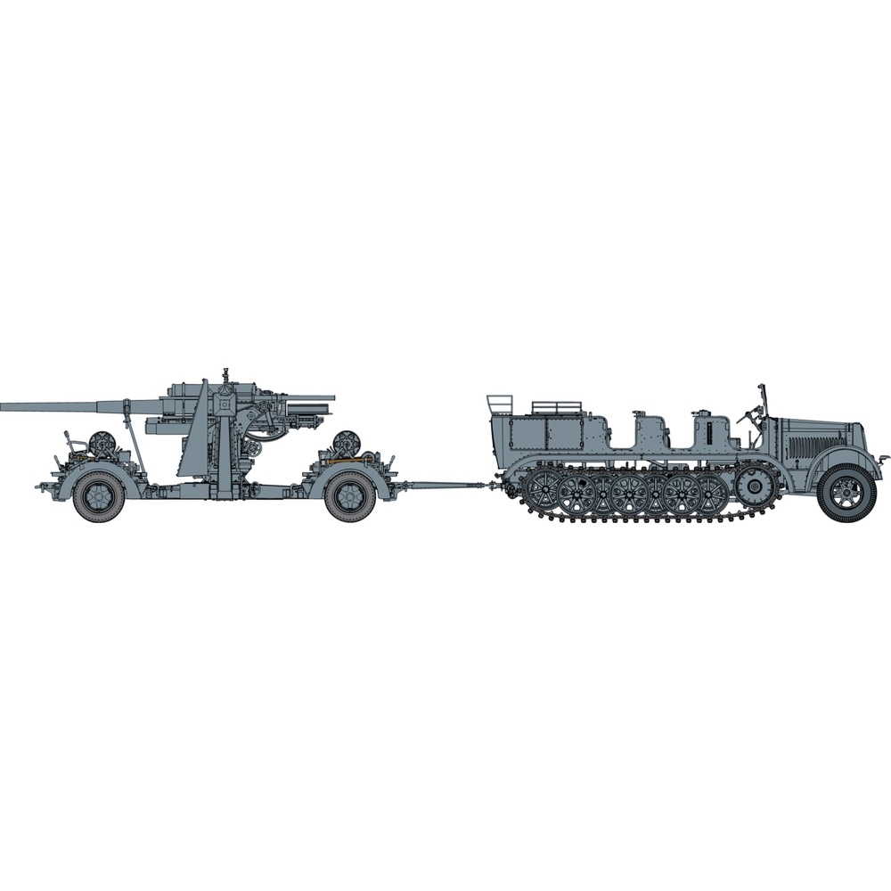 ■1/35スケールで再現した8トンハーフトラックとそれが牽引する高射砲、88mm砲をセット