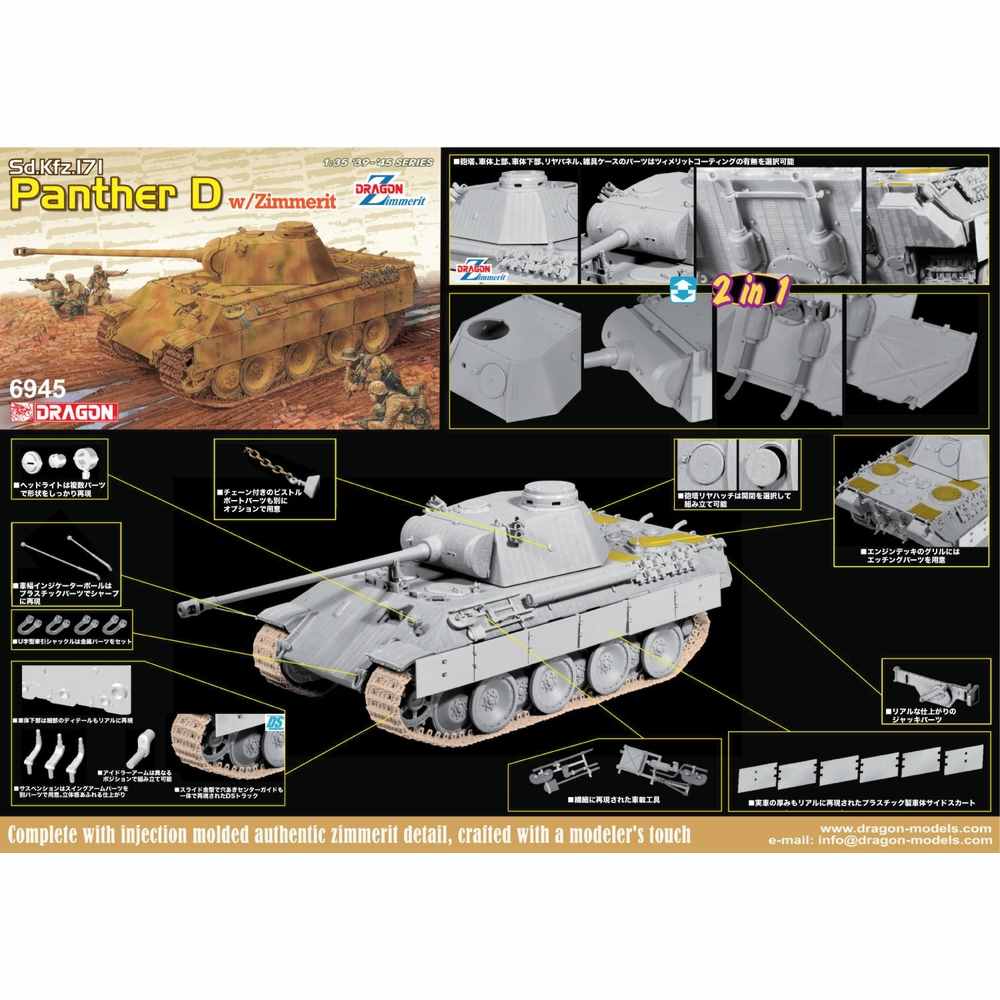 第二次大戦の最良のドイツ軍戦車といわれるパンターの初期タイプ、D型を1/35スケールで再現したプラスチックモデル組み立てキットです。