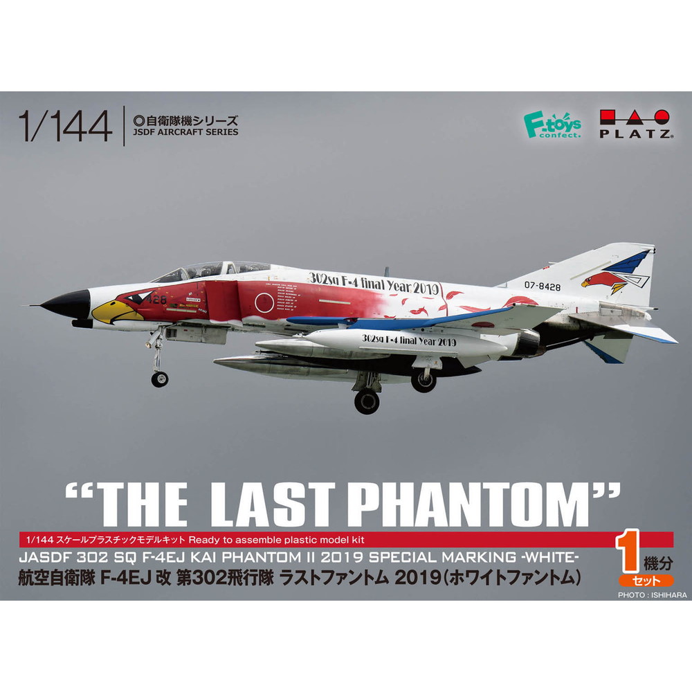 2019年3月の第302飛行隊F-4EJ改運用終了にあわせてそのラストイヤーに登場したホワイトのベースカラーに部隊マークのオジロワシをフィーチャーしたイラストをあしらったホワイトファントムを再現。機体側面や主翼のマーキングが見逃せません。
