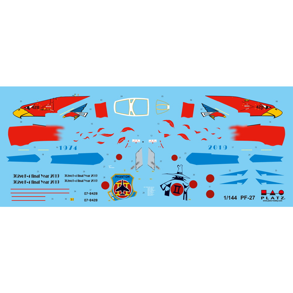 キットでは百里基地をベースにする第302飛行隊が2019年3月まで運用していたF-4EJ改のラストイヤーに特別な記念塗装を施して人気を集めた機体2機のマーキングを再現しています。