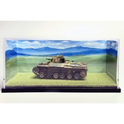 今回は劇場版で大洗女子学園を助けるためにライバル校が集結した熱いワンシーンをイメージ。専用の背景画や草原風に仕上げた展示ベースを用意しました。専用のクリアケースの中にそのままセットしましたので、クリアケースをパッケージから取り出して飾るだけで情景がよみがえります。