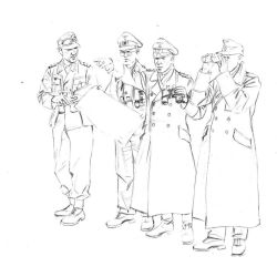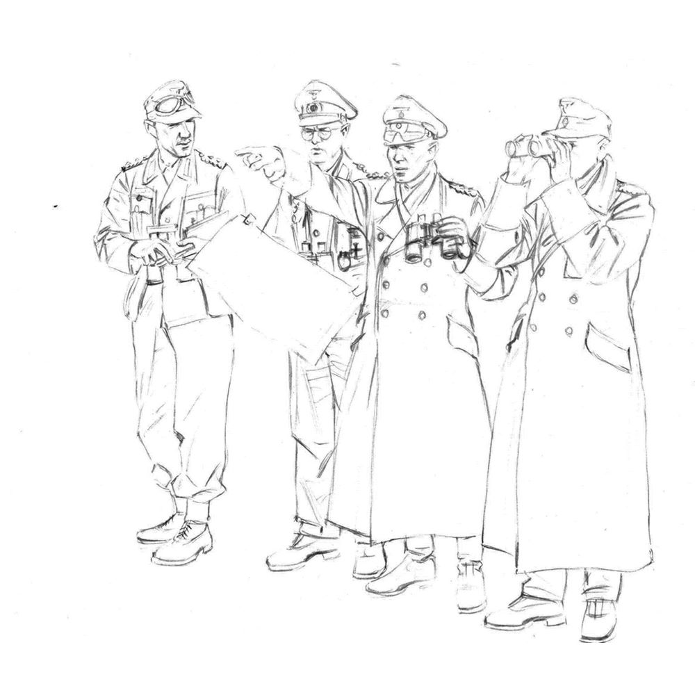 さらに、このキットではロンメルとそのスタッフフィギュア、計4体もセット。前線で作戦会議を行う姿を再現しています。地図を広げたり、双眼鏡を覗いたり、メモを取るなど、それぞれの動きから物語が広がります。