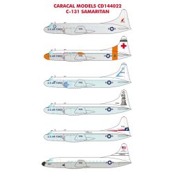 1/144スケールの輸送機C-131サマリタンのモデルに対応したデカールのセットです。