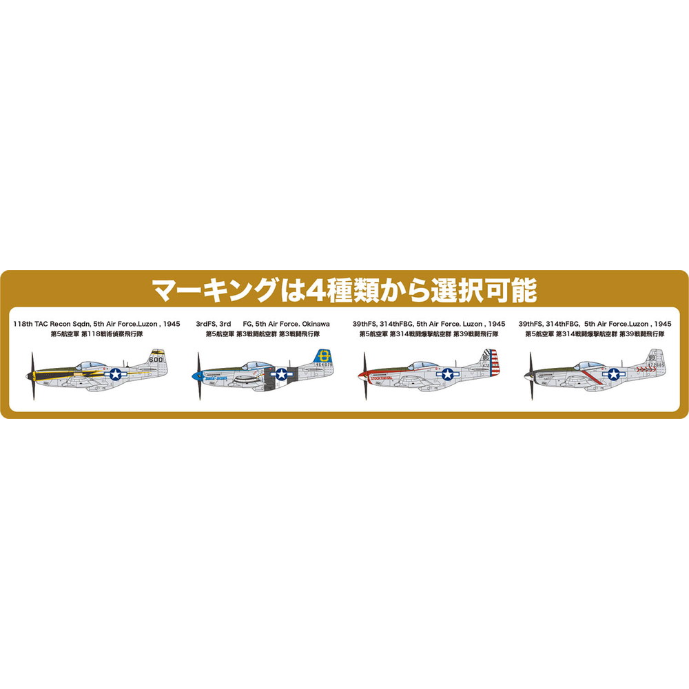 This is an unpainted assembly plastic model kit for P-51D Mustang of 5th Air force in 1/144 scale.