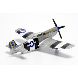 The North American Aviation P-51 Mustang is an American long-range, single-seat fighter and fighter-bomber used during World War II and was originally developed in remarkable time of 102 days in response to a request from British Purchasing Commission. The first P-51s with Allison engines were not able to show stunned high performance. By replacing Allison Engines with Rolls-Royce Merlin Engines, P-51 became a high performance aircraft and evolved into long-range bomber escort in European War, and was rival for Japan Army in Pacific War. D-version of P-51s were produced in larger numbers than any other Mustang variants. The P-51D featured a bubble canopy for all-around visibility, and was armed with six wing-mounted 12.7mm caliber machine guns. Wing racks allowed the carriage of drop tanks to extend range or bombs for ground attack.