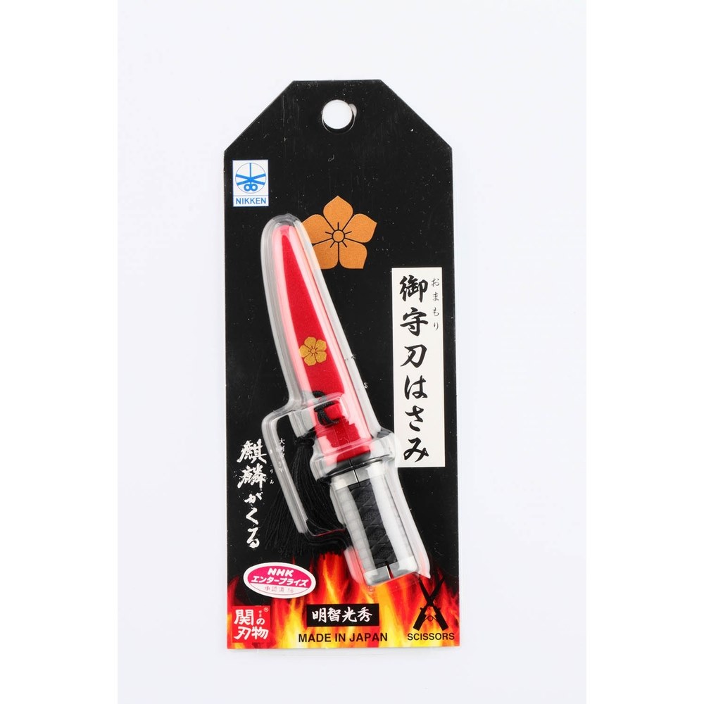 明智光秀の日本刀をイメージし、鞘には桔梗紋があしらわれています。