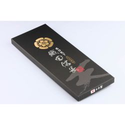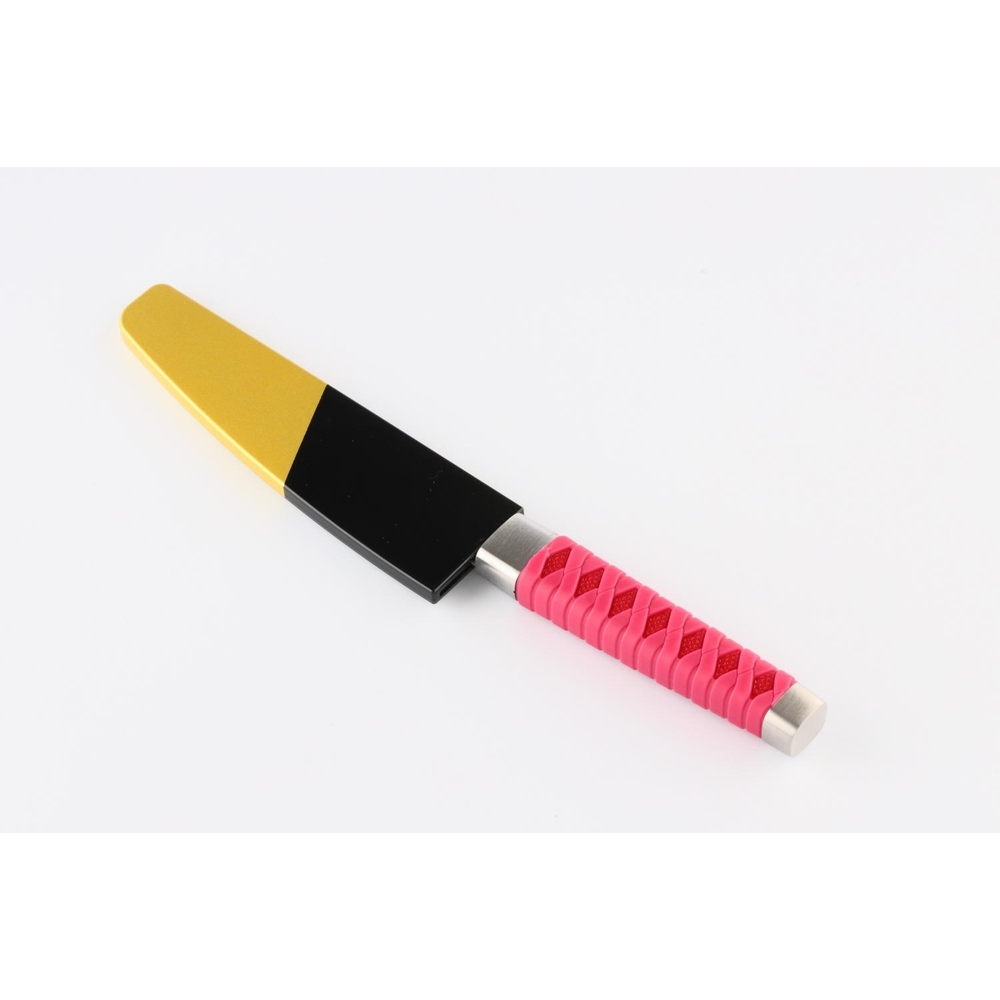 鞘は黒と金の装飾、刃体にはのたれ刃紋をイメージしてデザインされています。
