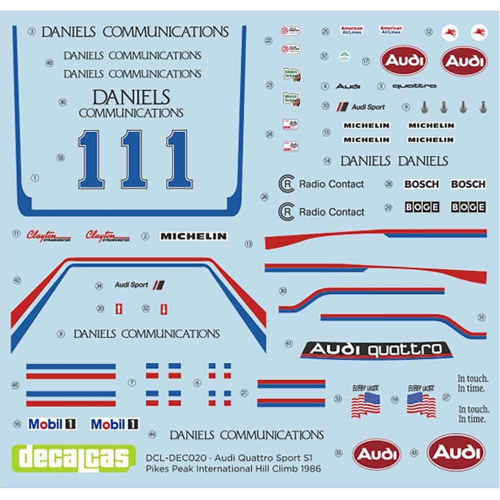 ■1/24スケール、アウディ クワトロ・スポーツS1のモデルに対応したデカールのセット