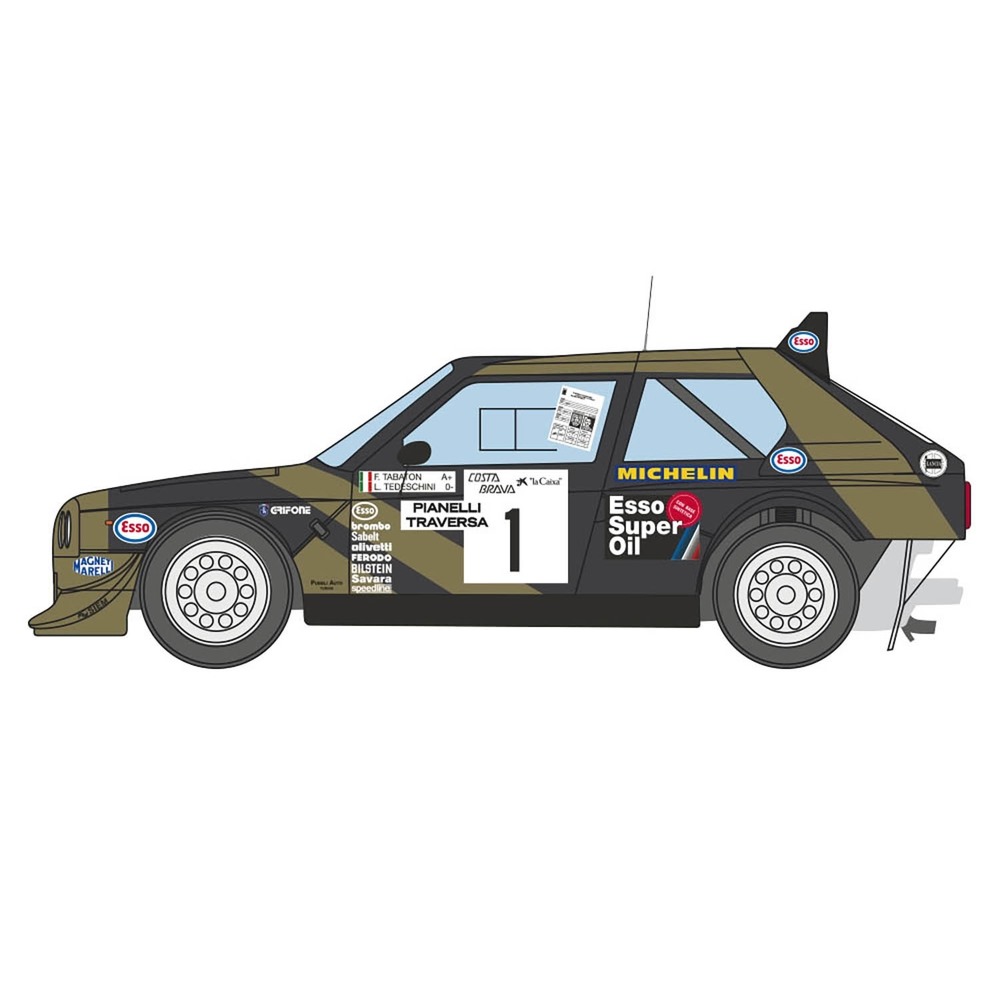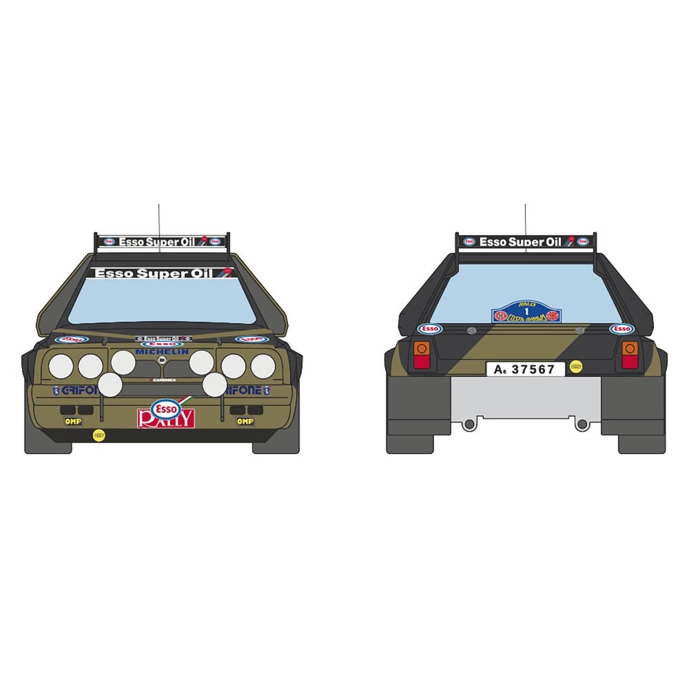 このセットでは1986年の2月にスペインで開催されたコスタ・ブラバレリーに参加し,見事優勝を飾ったカーナンバー1のマシンのマーキングを収録。ドライバーはFabrizio TabatonとLuciano Tedeschiniのイタリア人コンビ。ゼッケンナンバーの1やスポンサーのエッソ、ミシュランなどのスポンサーのロゴマークがデカールで用意されています。