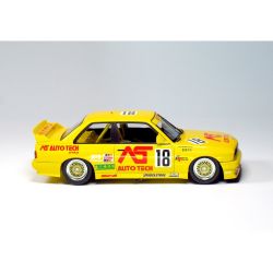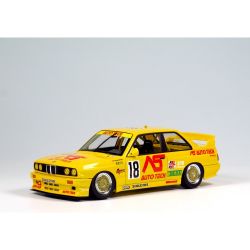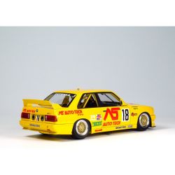 The BMW M3 E30 has distinguished achievements in touring car racing since Group A regulations was introduced in 1980s. The BMW M3 E30, based on the E30 3 Series, 2 door model, was equipped with blister fenders on the front and back to accommodate wider tread and larger tires. The rear side widow was designed inclined to improve aerodynamics, and the trunk was made accordingly to a high deck. The rear wing and the front spoiler were also added to enhance aerodynamics. With displacement 2.3 liters, the engine was based on the six-cylinder engine of BMW's super sports car M1, and was reduced by two cylinders to make it four-cylinder in-line fitted at the front. The BMW M3 E30 was active in Group A races around the world.