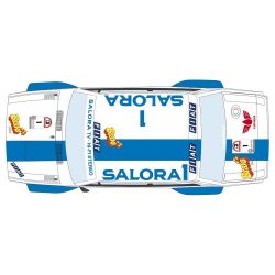 このセットでは1980年の8月にフィンランドで開催された1000湖ラリーに参加し,見事優勝を飾ったカーナンバー1のマシンのマーキングを収録。ドライバーはフィンランド人ドライバーのマルク・アレンとコ・ドライバーのイルッカ・キビマキのコンビ。ホワイトのボディカラーに明るいブルーの塗分けを施したら、デカールで用意されたゼッケンナンバーやメインスポンサー、フィンランドのエレクトロニクス製品メーカーのサローラなどのスポンサーのロゴマークを貼って仕上げます。デカールにはダッシュボードのメーター類のマークもセットされています。