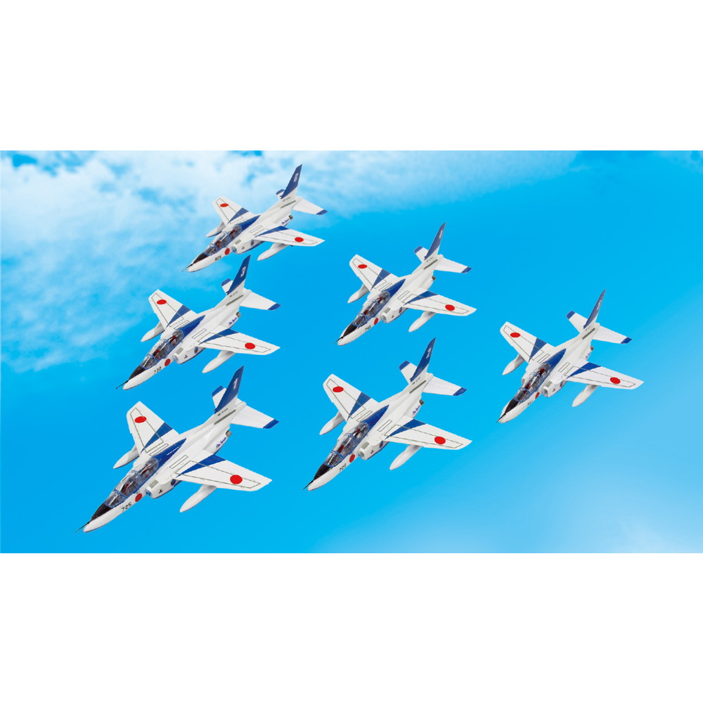 - Contains a set of Six JASDF T-4 Blue Impulse aircraft with display stands and decals.