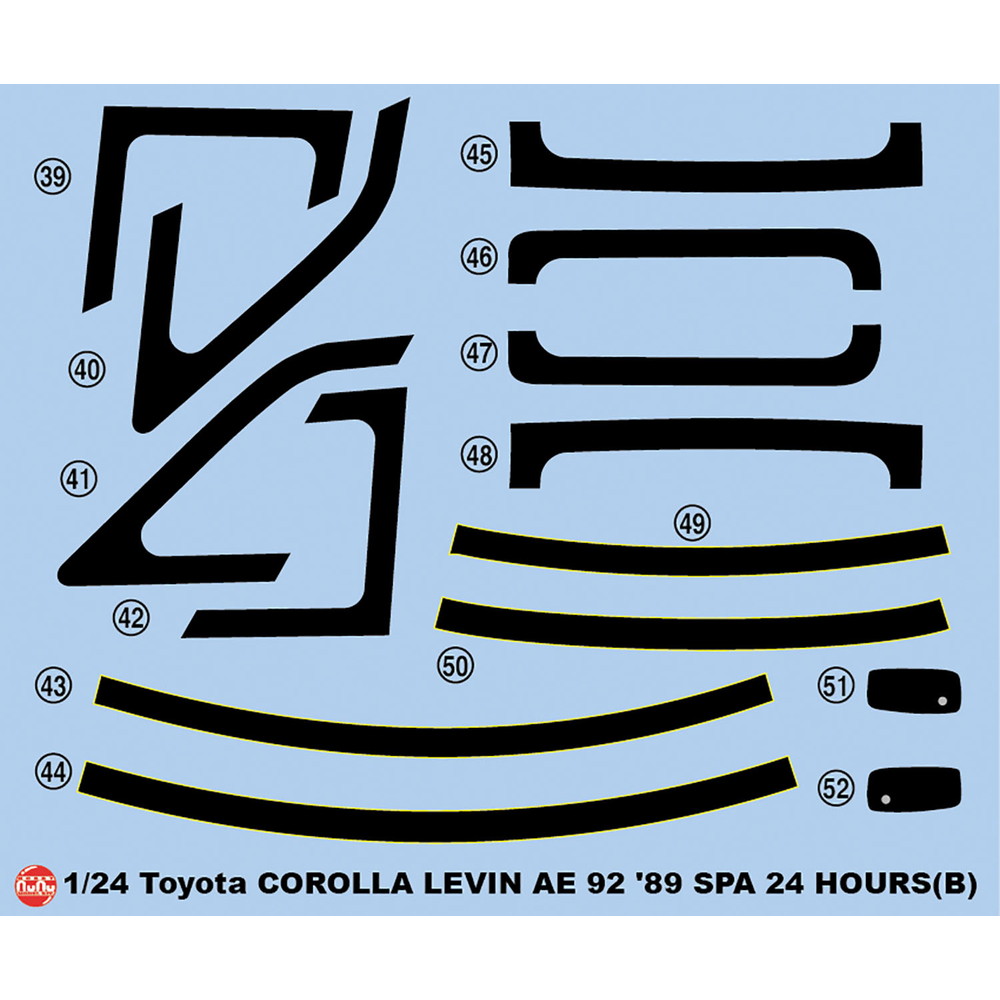 This is a 1/24 scale unpainted assembly plastic model kit for the Toyota Corolla Levin AE92 which won the 3rd in 1989 24 hours of Spa.