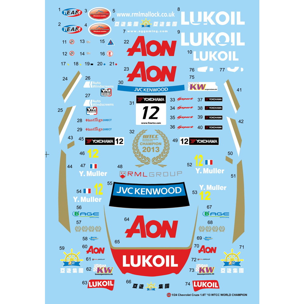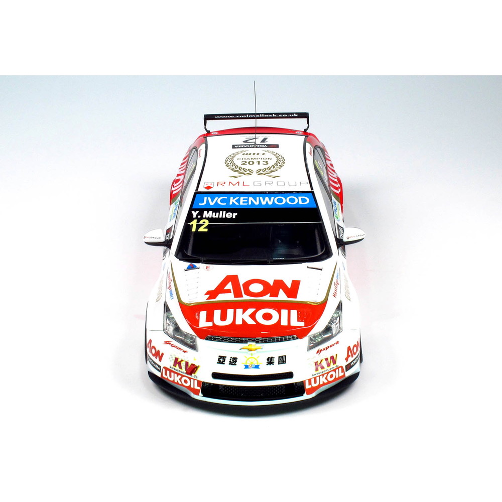 About the Chevrolet Cruze 1.6T '13 WTCC World Champion. In the 2013 WTCC(World Touring Car Champion), the Chevrolet Cruze driven by Yvan Muller won the driver's title. The development of Chevrolet Cruze was based on the commercial-use model announed in 2008, and made its entry to WTCC from 2009. Powered by 1.6-liter turbo engine, the Chevrolet Cruze won the driver's and manufacture's titles for three years from 2010 to 2012, and showed its high performance. In the 2013 season, Muller driving Chevrolet Cruze and successfully won the champion as a private team.