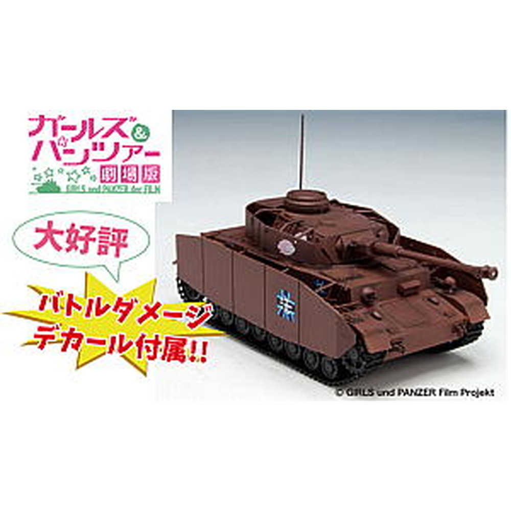 気軽に作れる1/72スケールで、みほ達のIV号戦車H型を再現。手頃なサイズ感でパーツ数も少ないので模型初心者でも安心。最終章で観た、あの興奮をその手で組み上げていただけます!本体成形色は、塗装しなくても劇中のイメージに近い仕上がりが楽しめるブラウン。履帯はブラックで成形され、組み立てやすいDSトラックを採用。 あんこうマークや大洗女子学園の校章は、高品質なカルトグラフ製のデカールで再現。最終章からのガルパンファンにもオススメのキットです。また今回は、特別版として激戦を繰り広げ、ダメージを受けた状態を再現できるデカールが付属!デカールを使用することで、よりリアルに戦車戦を展開したガルパン戦車を再現することが出来ます。最終章にて、BC自由学園、知波単学園と熱い戦いを繰り広げた『IV号戦車H型 あんこうチーム』を再現してみてはいかがでしょうか。