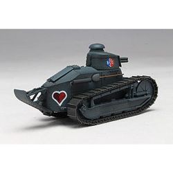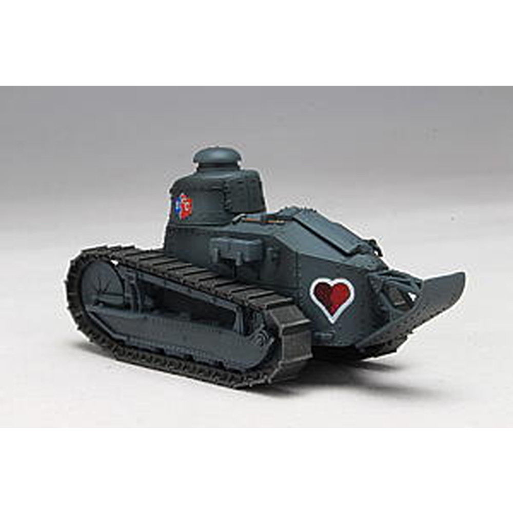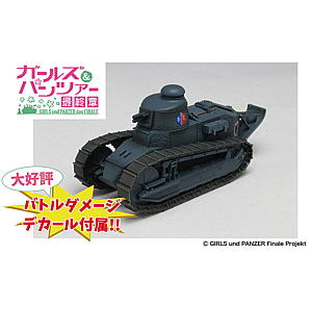 BC自由学園のFT-17を1/72スケールで再現。パーツは劇中で登場する車輌に合わせた塗装がしやすいダークグレーで成型。砲塔に描かれた、左右で微妙に大きさの違うCB自由学園の校章や、車体後部に描かれたハートのマーキングは、高品質のカルトグラフ製デカールで再現。フラッグ部分もデカールで再現可能です。また今回は、特別版として最終章にて大洗女子学園と激戦を繰り広げ、ダメージを受けた状態を再現できるデカールが付属!デカールを使用することで、よりリアルに戦車戦を展開した ガルパン戦車を再現することが出来ます。よりリアルな『 FT-17 BC自由学園』を再現してみてはいかがでしょうか。