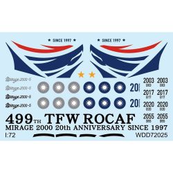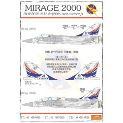 このセットでは現在、台湾の中華民国空軍が配備運用するマルチロール機、ミラージュ2000-5のマーキングを再現するデカールを収録。2017年に導入20周年を迎え、記念の塗装やマーキングが施されました。このデカールでは実際に記念塗装機に施されたマーキングを再現。垂直尾翼に描かれた龍と風をモチーフにしたイラストが目を引きます。
